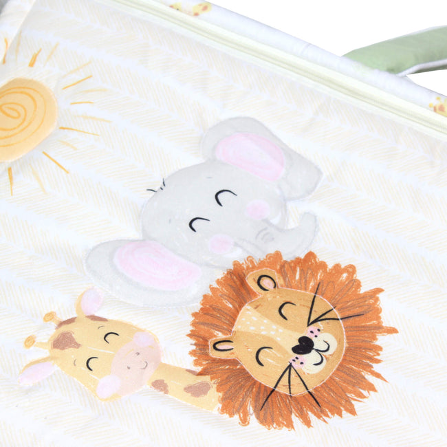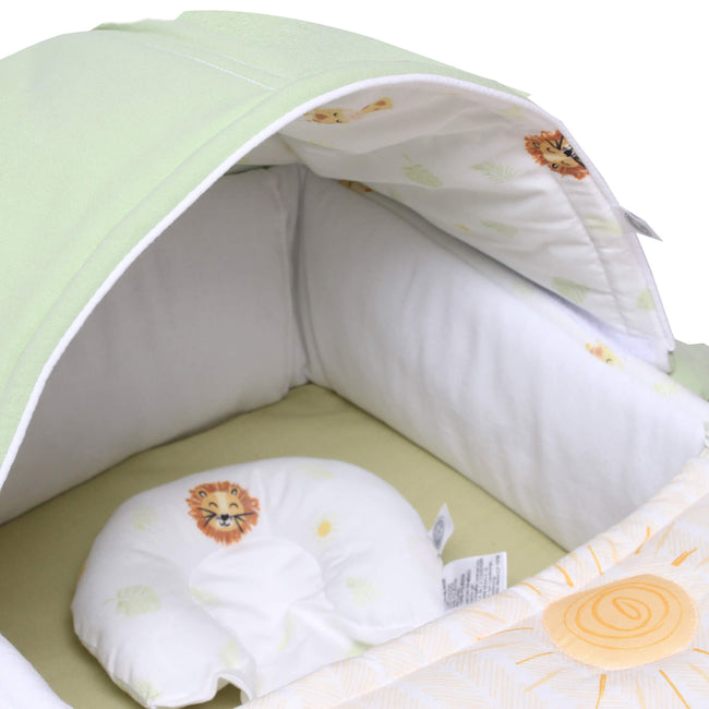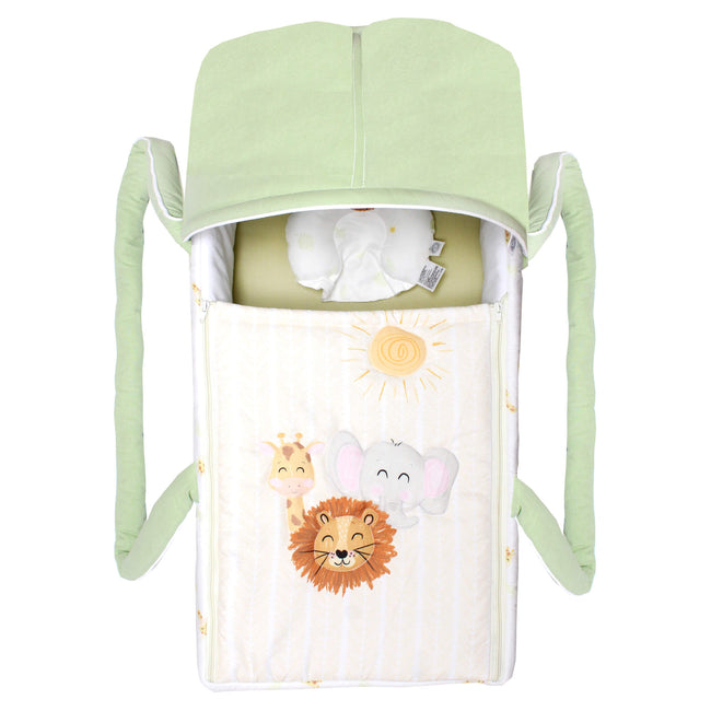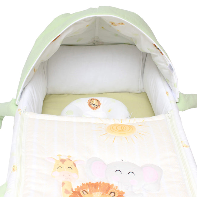 Con en Bambineto de Safari tendrás todo lo necesario para tener protegido a tu bebé, además de tener un gran confort, disfrutaras de su diseño de Safari que hará que quieras llevarlo a todas partes. Incluye un colchón, una almohada mollera y un gorro retráctil. Ideal para trasportar a tu bebé. En su interior y colchón encontrarás una tela tipo Percal algodón/poliéster que es muy fresca, podrás sentirlo al tocarla. Y por fuera tiene una tela tipo Microfibra con un diseño increíble. Todo esto hacen a este bambineto muy fresco y transpirable. Tiene una estructura de acero que le ayudara a que este muy protegido y además su terminado de pintura electroestática evita que se desprenda cualquier sustancia que pueda ser dañina. Su base está forrada de un material impermeable y resistente para que puedas poner el bambineto en el suelo evitando que se moje y ademas es súper resistente. También notarás que se puede desmontar fácilmente para lavarlo. Todo lo que quieres para tu bebé está en el bambineto Safari Cary.