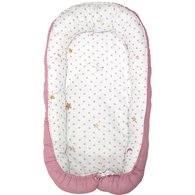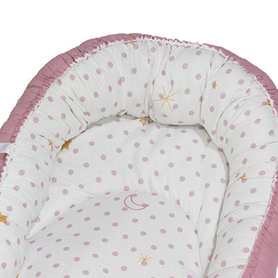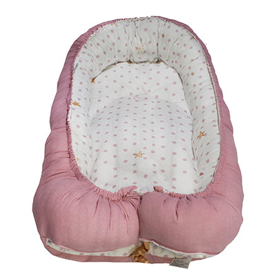 Con el Baby Nest de Cary podrás tener a tu bebé súper cómoda y protegida en tu cama. Este diseño te permitirá que puedan dormir juntos, a que puedan tener un mejor descanso tú y tu bebé y a estar ahí en todo momento durante su sueño. La protección y comodidad se debe a sus materiales en tela 100% Algodón y a su relleno suave (100% poliéster Delcron/Fiber) que le darán soporte a su cuerpo y evitará que se mueva mucho. Tu bebé se sentirá muy protegida y para ti hará una función como de una almohada dándote la seguridad de que evitarás accidentes al tener a tu bebé en la cama. Es auto Ajustable para la rigidez de la protección y altura deseada conforme a sus necesidades para dormir. Incorpora materiales es 50% Algodón y 50% poliéster de 180 hilos en su base, notarás que es muy fresca y muy suave. Notarás que es muy fácil de lavar y no requiere cuidados especiales. Todo es en una sola Pieza. ¡¡Disfrutarás este nido Cary con tu bebé!!